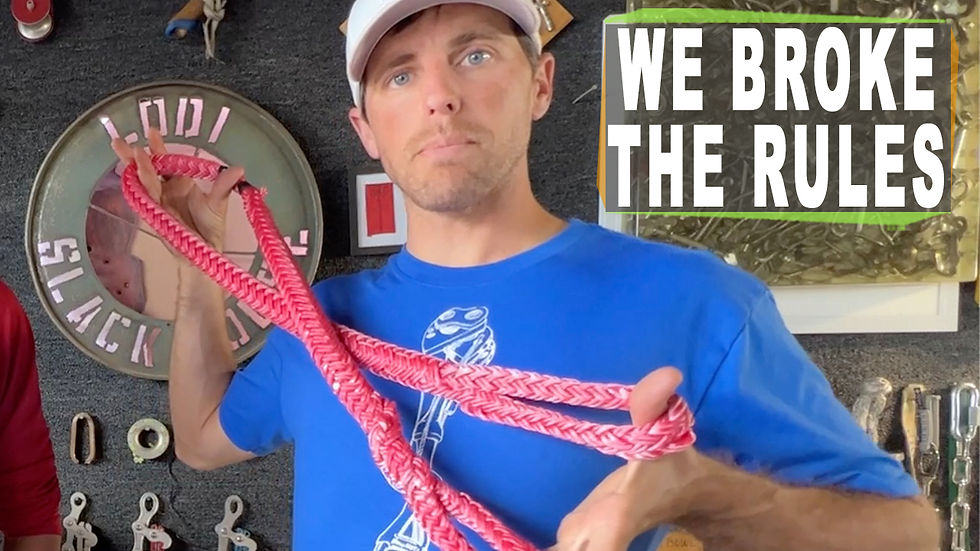 My fellow Dyneema (HMPE) nerds: Grog loops are a continuous loop made using hollow braided rope like Amsteel, with a brummel type connection so, in theory, you don't need to sew the splice. We tested how short the buries have to be to be super safe enough (spoiler alert: not too short!) and we discovered you don't exactly get the theoretical 180% of the single strand rating like Animated Knots estimated at in the "strength" section of their Grog Sling Knot Article. It is recommended that the tail loops be 30 times the diameter of the material, which is fine if you don't care how big your loops is, but if you are trying to connect two things together like two slackline webbings, that limits how small a Grog Loop can be. We tested configurations with "smaller than recommended" tails to see if we can make small loops that are super good enough.